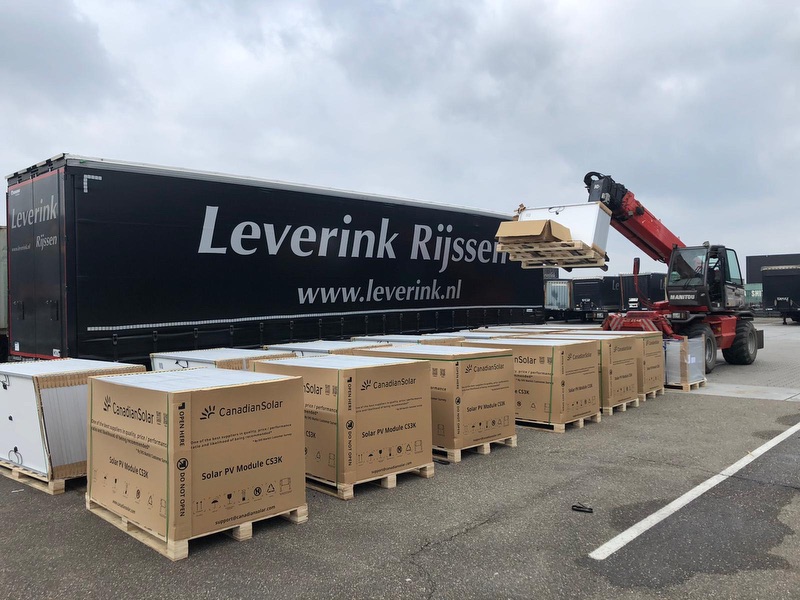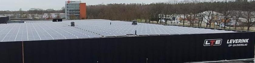 De 832 panelen zijn geplaatst op het dak van Leverink Transport aan de Spoelerstraat, en afgelopen dagen zijn de (best complexe, veel partijen nodig die met elkaar moesten samenwerken) bekabelingswerkzaamheden ook afgerond. We verwachten dat we binnen 2 weken ook de stroom die het dak opwekt als opbrengst kunnen noteren.