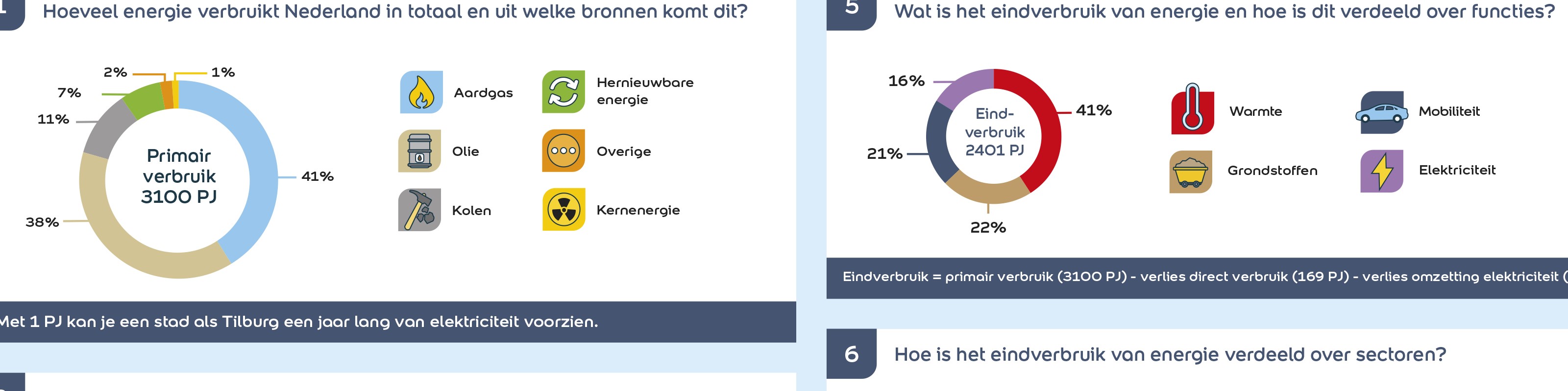 We vonden deze interessante informatie over hoeveel energie Nederland gebruikt, hoe het wordt opgewekt, welke sectoren het meest gebruiken etc. Nuttig, omdat je vaak verschillende percentages leest en hoort over wat er nu duurzaam opgewekt wordt, wat dan bijvoorbeeld te maken heeft dat de ene keer gekeken wordt naar de totale hoeveelheid 'energie' die Nederland nodig heeft, en de andere keer naar de hoeveelheid 'elektriciteit'. Ook is vaak niet duidelijk over welke periode het gaat: het is nogal logisch dat je op een zonnige dag overdag in de zomer meer stroom met zonnepanelen opwekt dan op een donkere dag in de winter, terwijl dat bij wind weer heel anders is.